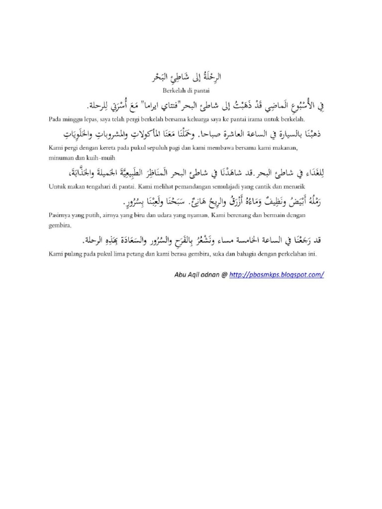 Contoh Karangan Bahasa Arab Pt3 2020 Oleh Pelajar